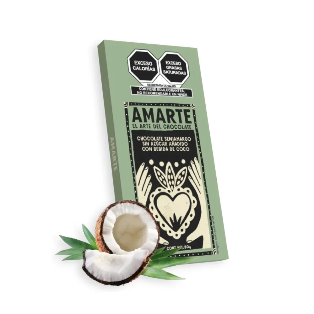 Chocolate Semiamargo con Coco 60% Cacao 80g: exquisito chocolate con intenso sabor a cacao y un toque natural de coco. Ideal para disfrutar un snack indulgente y saludable, combinando textura, aroma y sabor en cada bocado.